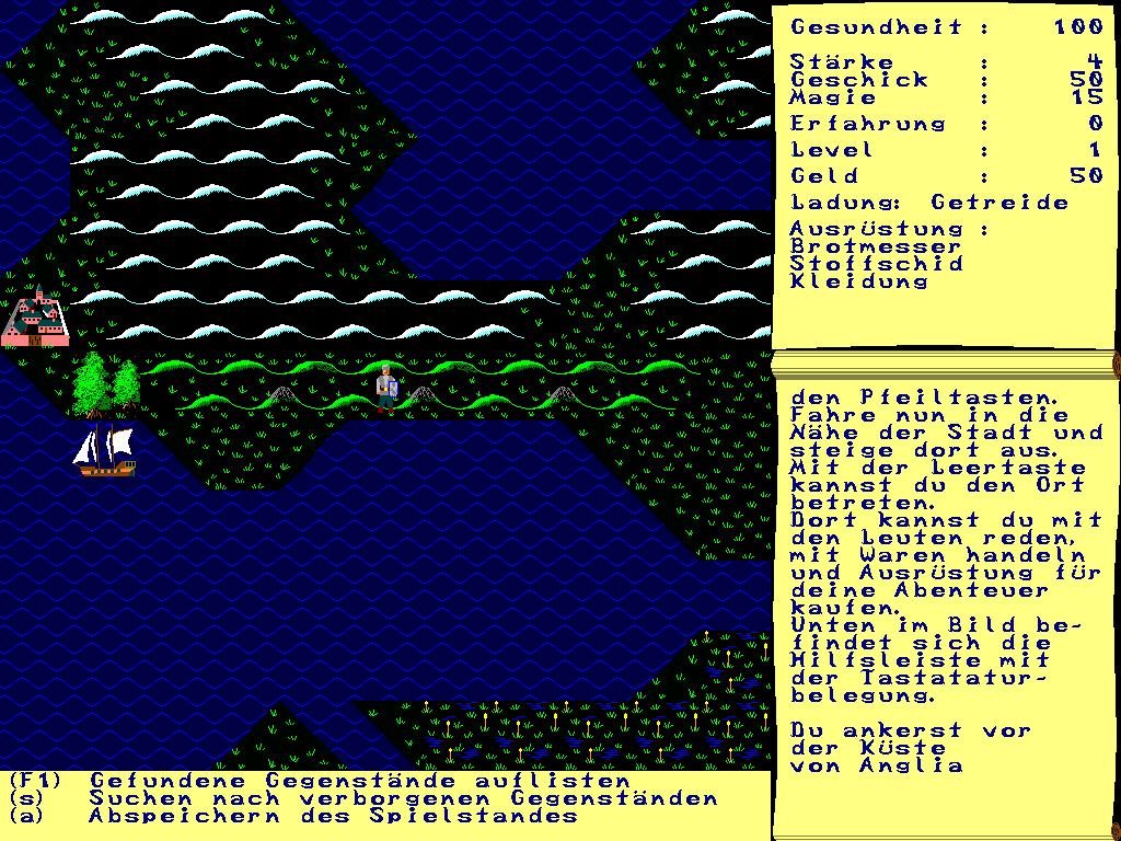 Sie starten zunächst auf Ihrem Schiff, mit dem sie die Meere der Oberwelt befahren können. Den